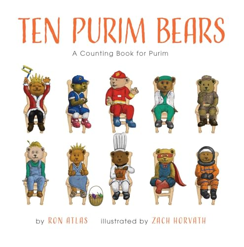 “Once a bear, sat on a chair. ” Ron Atlas provides a gentle rhyme about friends gathering together. Kids will love counting the bears on each page. The pages are bordered by two number lines, with the number words at the top of the page and numbers directly below the chairs. This makes it easy to see the numerals as children count the bears. Kids will also enjoy looking at all the Purim costumes in Zach Hovath’s illustrations. If you need a cute book for your little one, you can count on this.